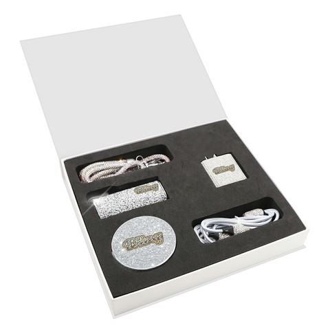 2024 New Arrival điện tử Bộ Quà Tặng kim cương dát ngân hàng điện 3 trong 1 sạc cáp không dây sạc tường sạc hai dây buộc